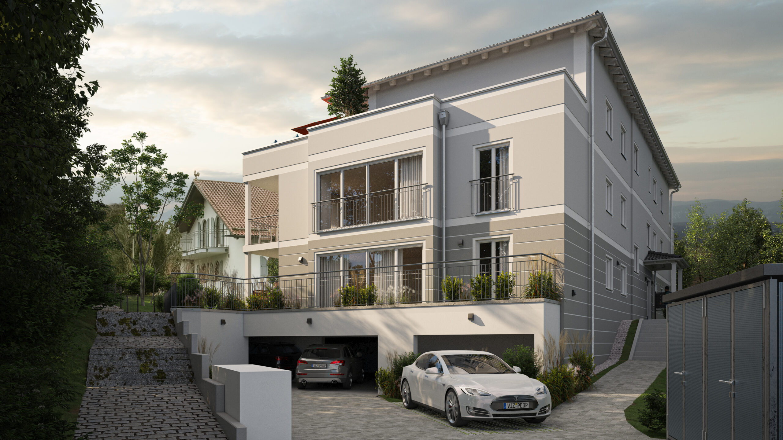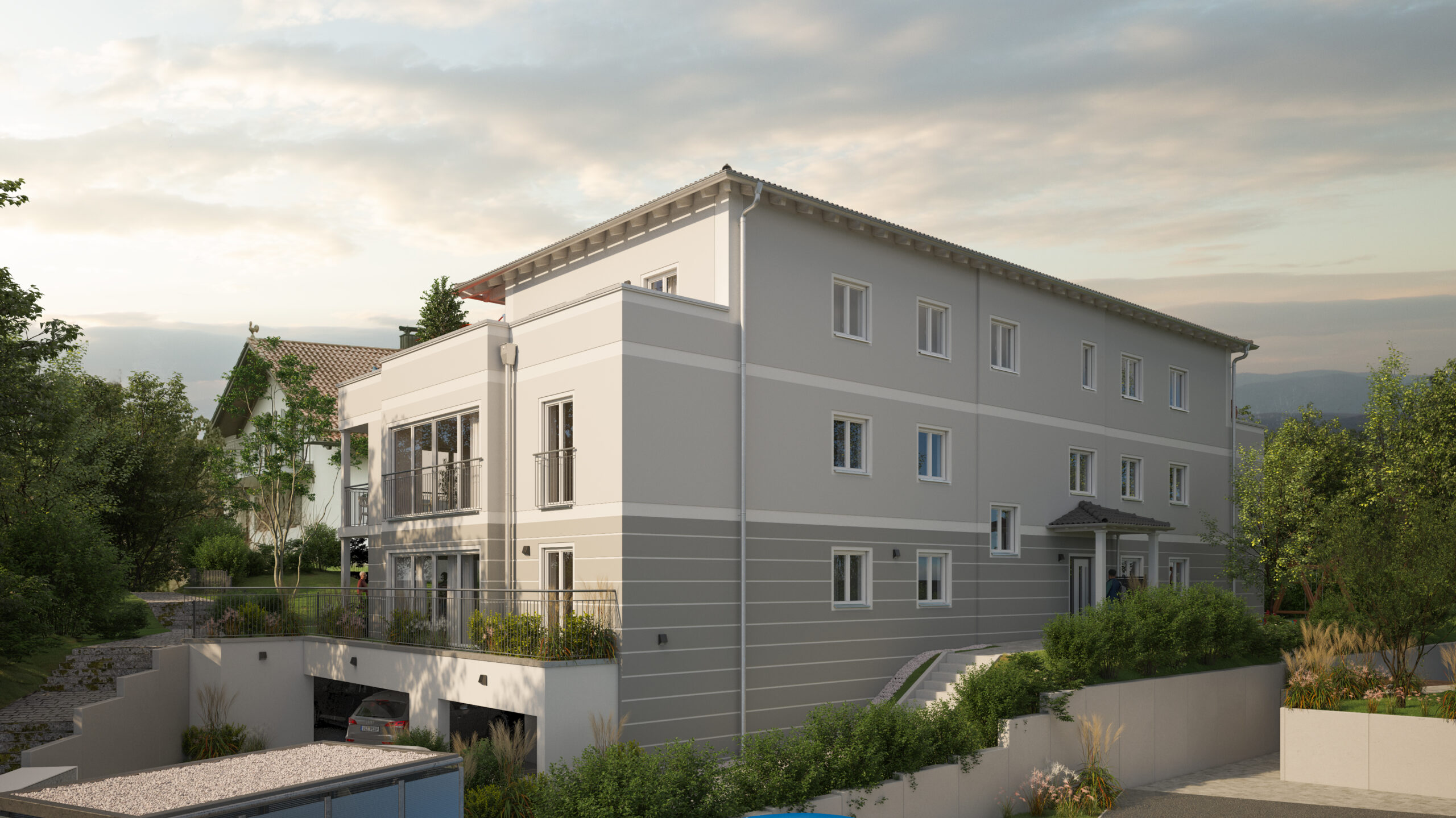 – Tiefgarage ebenerdig befahrbar
