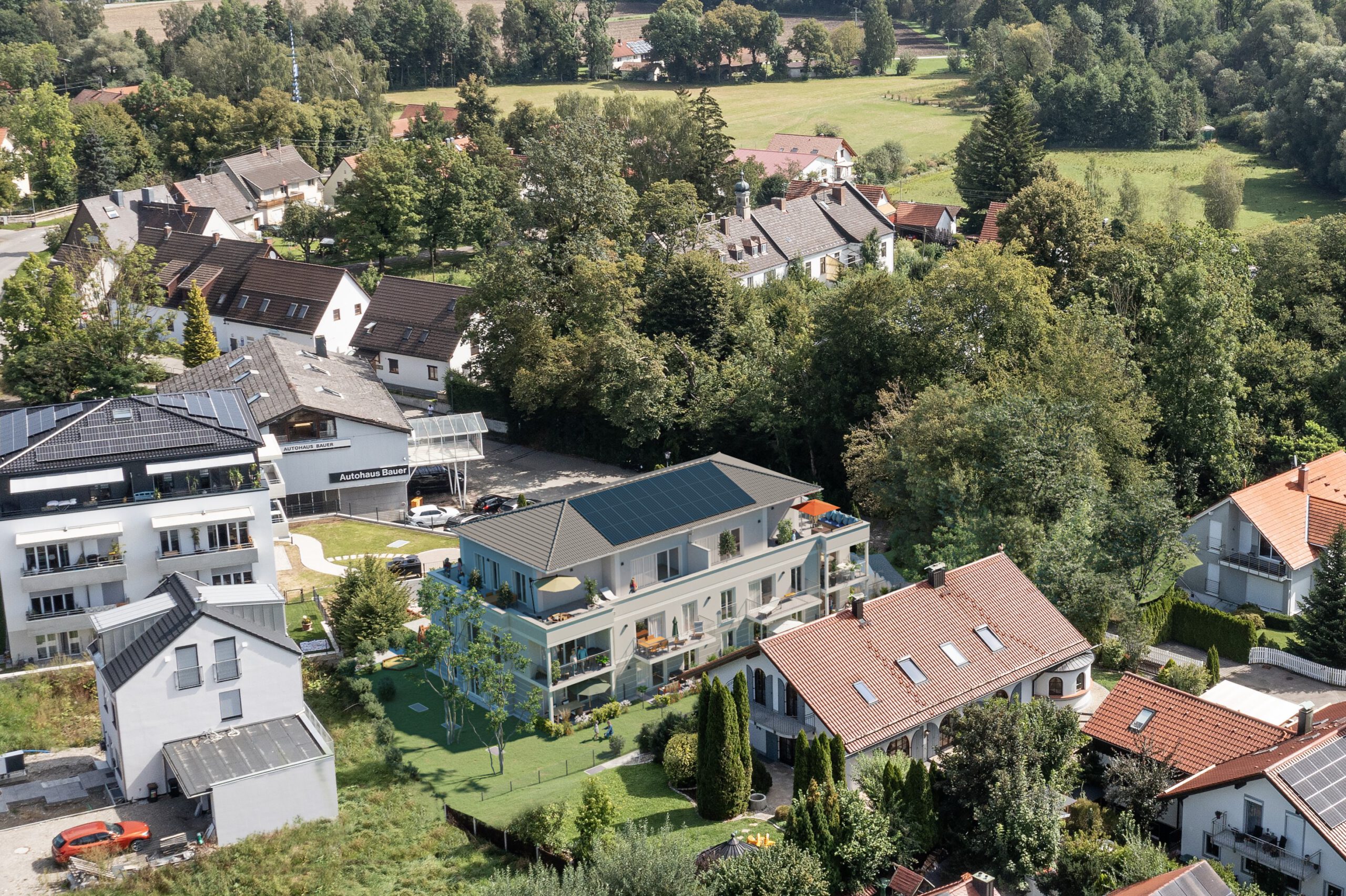 Idyllische Erholungsmöglichkeiten direkt vor der Haustüre. Dieses Traumgrundstück liegt absolut ruhig in einer kaum befahrenen Seitenstraße in der Ortsmitte. Es entsteht ein Mehrfamilienhaus mit 10 Wohnungen und Tiefgarage. Exklusive 2-4 Zimmer Wohnungen mit modernster Technik. Auf eine hochwertige und vor allem nachhaltige, massive Bauweise wird besonders Wert gelegt.